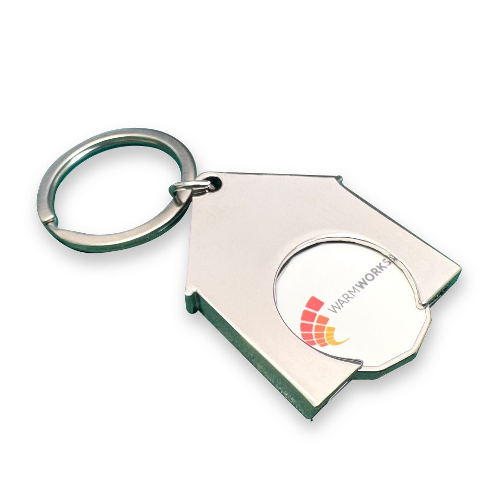 A zinc alloy house-shaped holder including an iron trolley coin printed full colour on 1 or both sides. Full colour printing is best for creating detailed and vibrant coins with a flat and smooth surface. Perfect for promoting mortgage companies or building societies as well as estate and letting agencies.