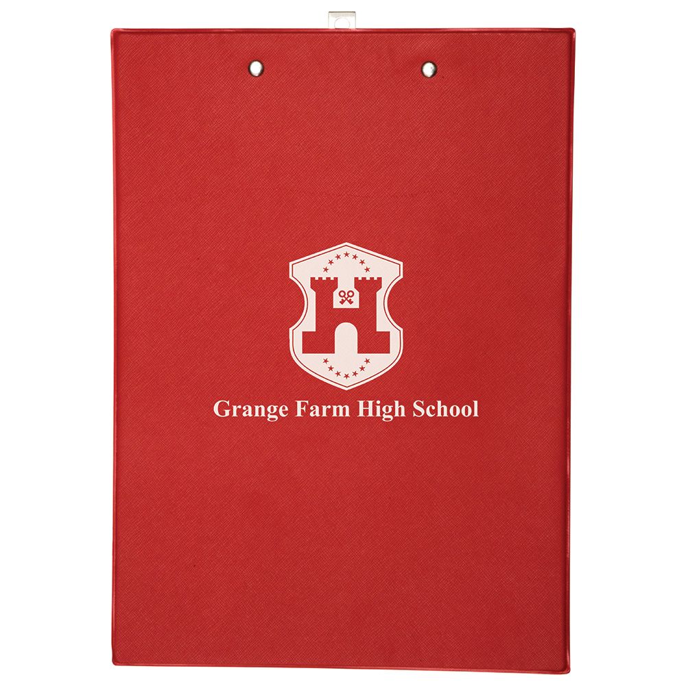 An A4 PVC clipboard available plain next-day or with a screen or full colour transfer print on the front or back in 8-10 working days. Ideal for holding loose papers while writing on the move.